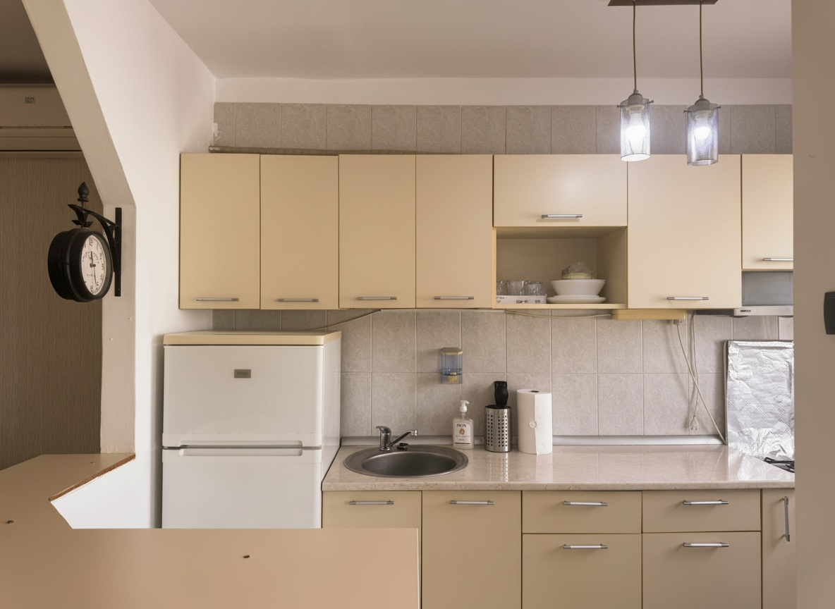 Bucătărie și Dotări:Bucătăria separată este complet mobilată și echipată cu tot ce aveți nevoie: plită cu gaz, hotă, aragaz, chiuvetă și numeroase corpuri de depozitare superioare și inferioare. Finisajele includ gresie și faianță în nuanțe neutre, fereastră cu lumină naturală și radiator pentru confort termic.