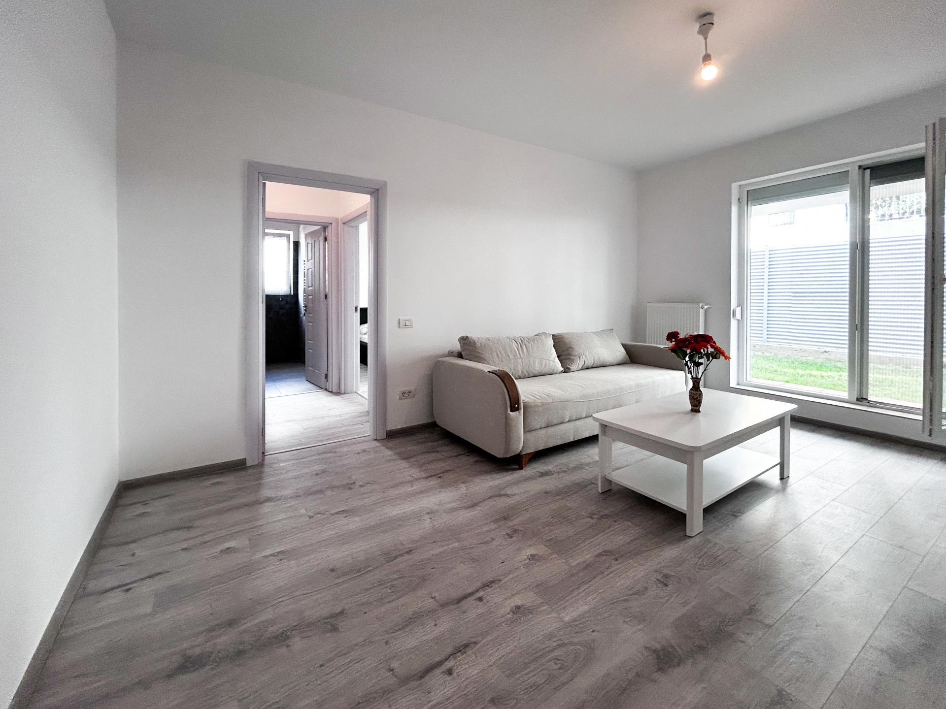 Apartamentul este situat la parterul unui bloc finalizat in 2023, in suprafata totala de 110mp (50mp + 60mp curte privata), mobilat si utilat (centrala termica, cuptor electric, aragaz, frigider, hota).
