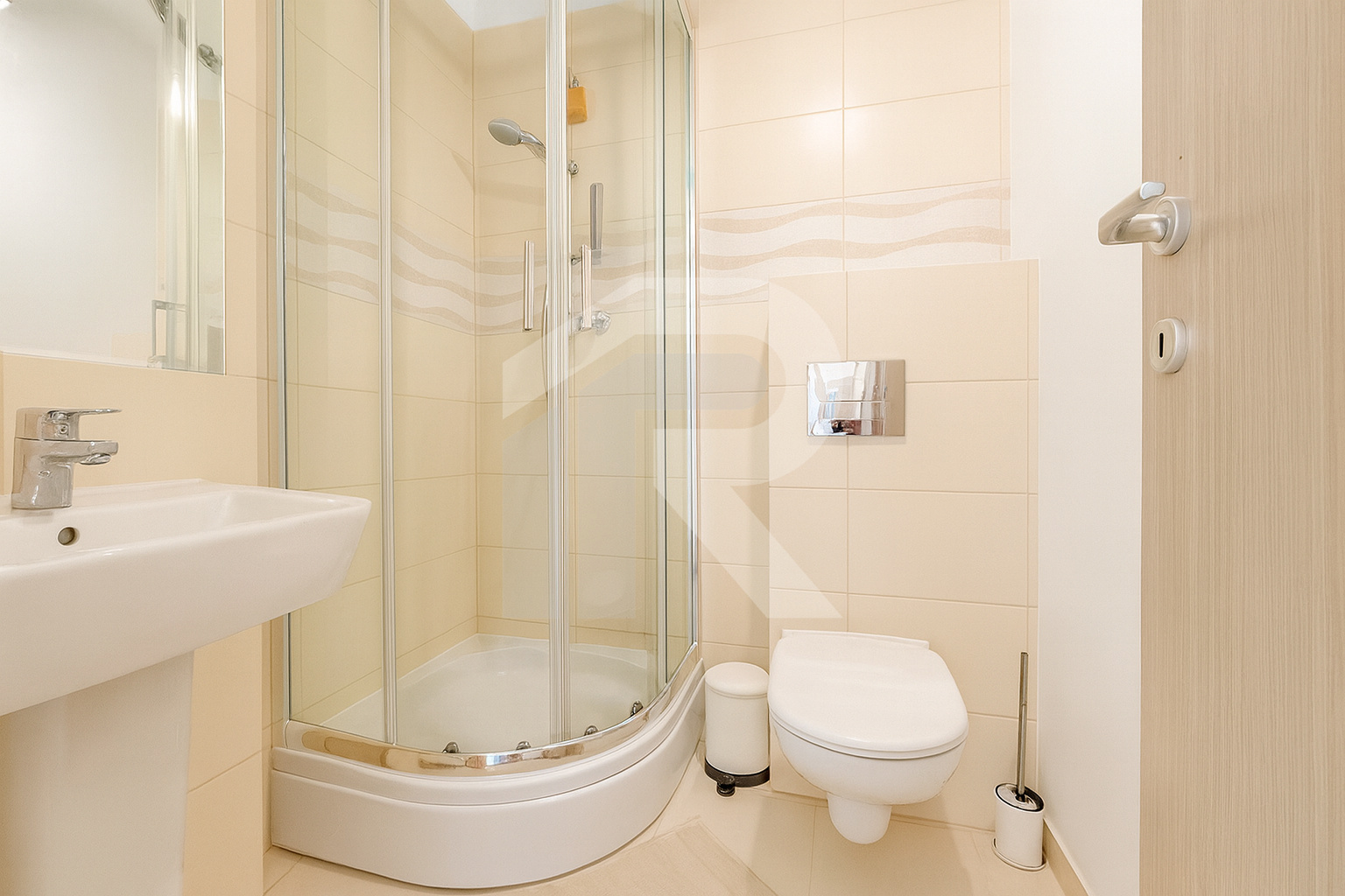 • 2 băi: una cu cadă și fereastră pentru aerisire naturală, una cu duș
