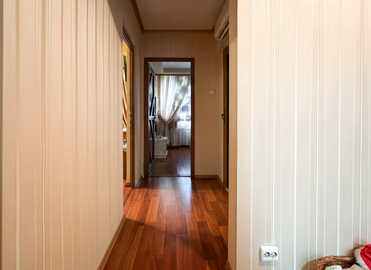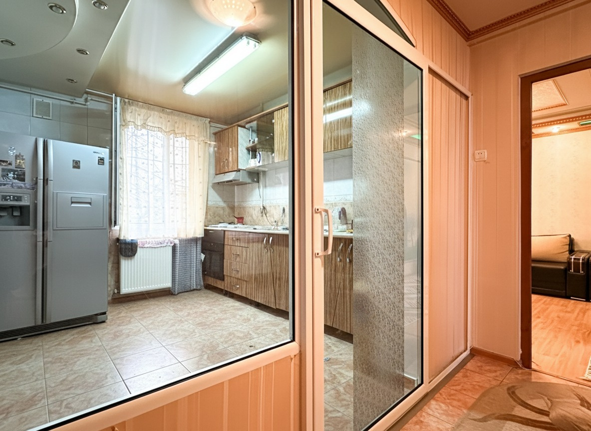 Apartamentul are 62 de metri pătrați utili, decomandat: două dormitoare suficient de generoase pentru paturi duble și dulapuri, un living în care încape masa de familie, o bucătărie spațioasă unde poți să gătești confortabil, nu să te învârți între frigider și aragaz. Spațiile sunt reale, nu optimizate la milimetru ca în blocurile noi unde doar pe hârtie încap lucrurile.