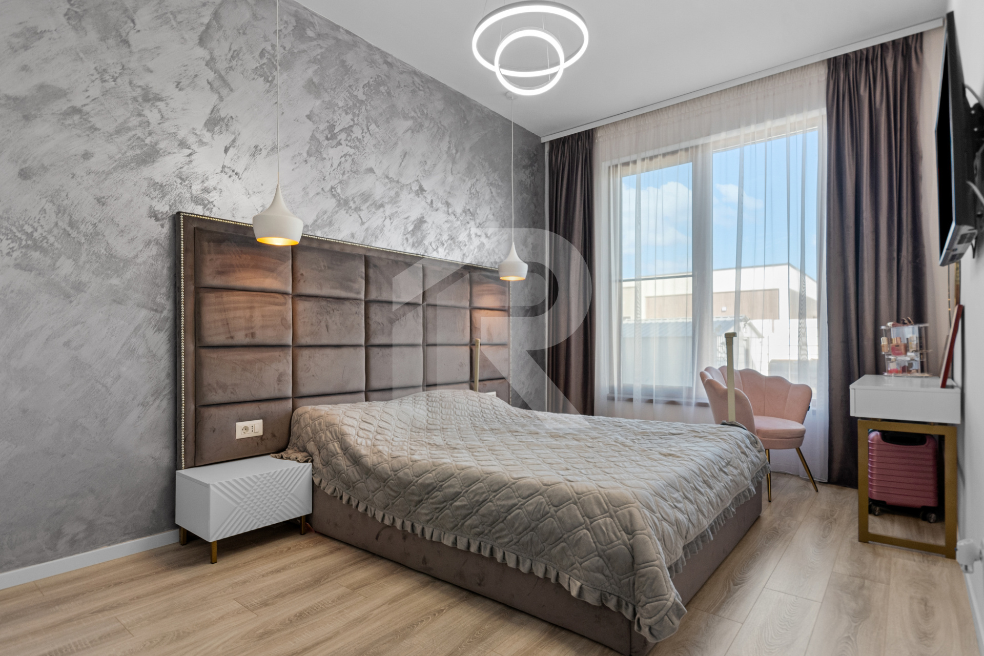 Dispune de 4 camere compartimentate in 85.4mp utili la care se adauga o terasa inchisa in sticla. Incalzirea se realizeaza prin pardoseala cu ajutorul unei centrale termice prin condensare.
