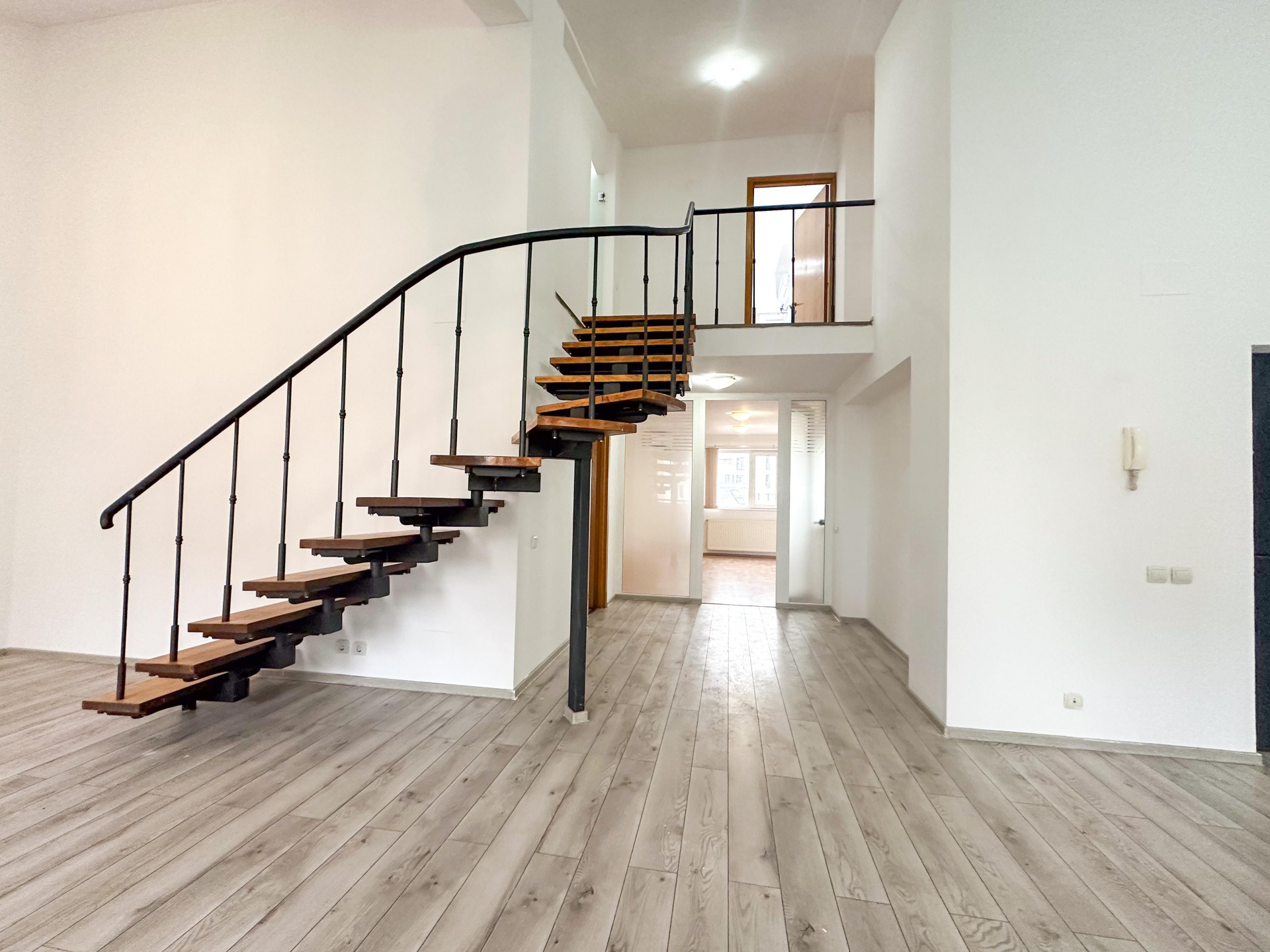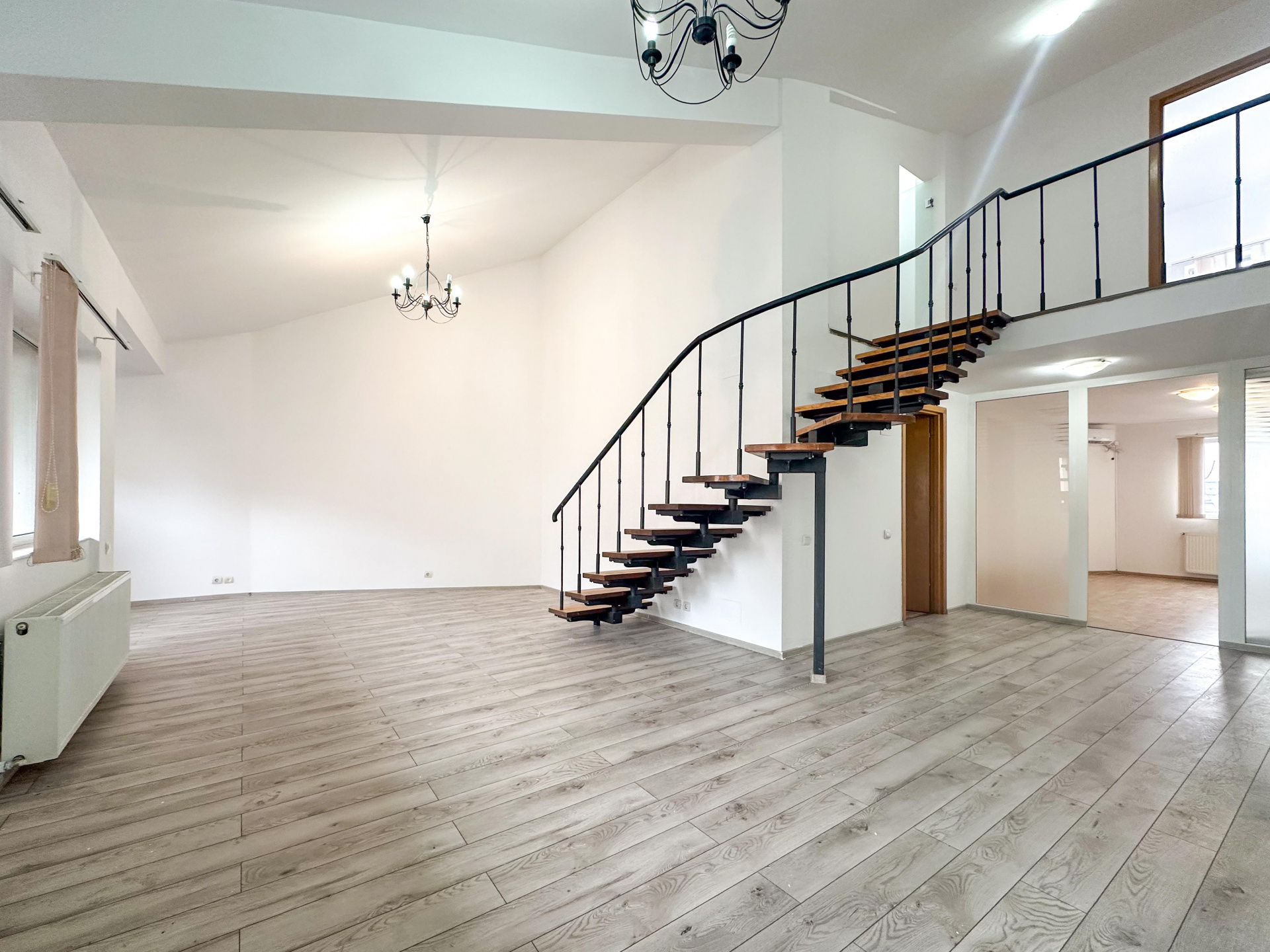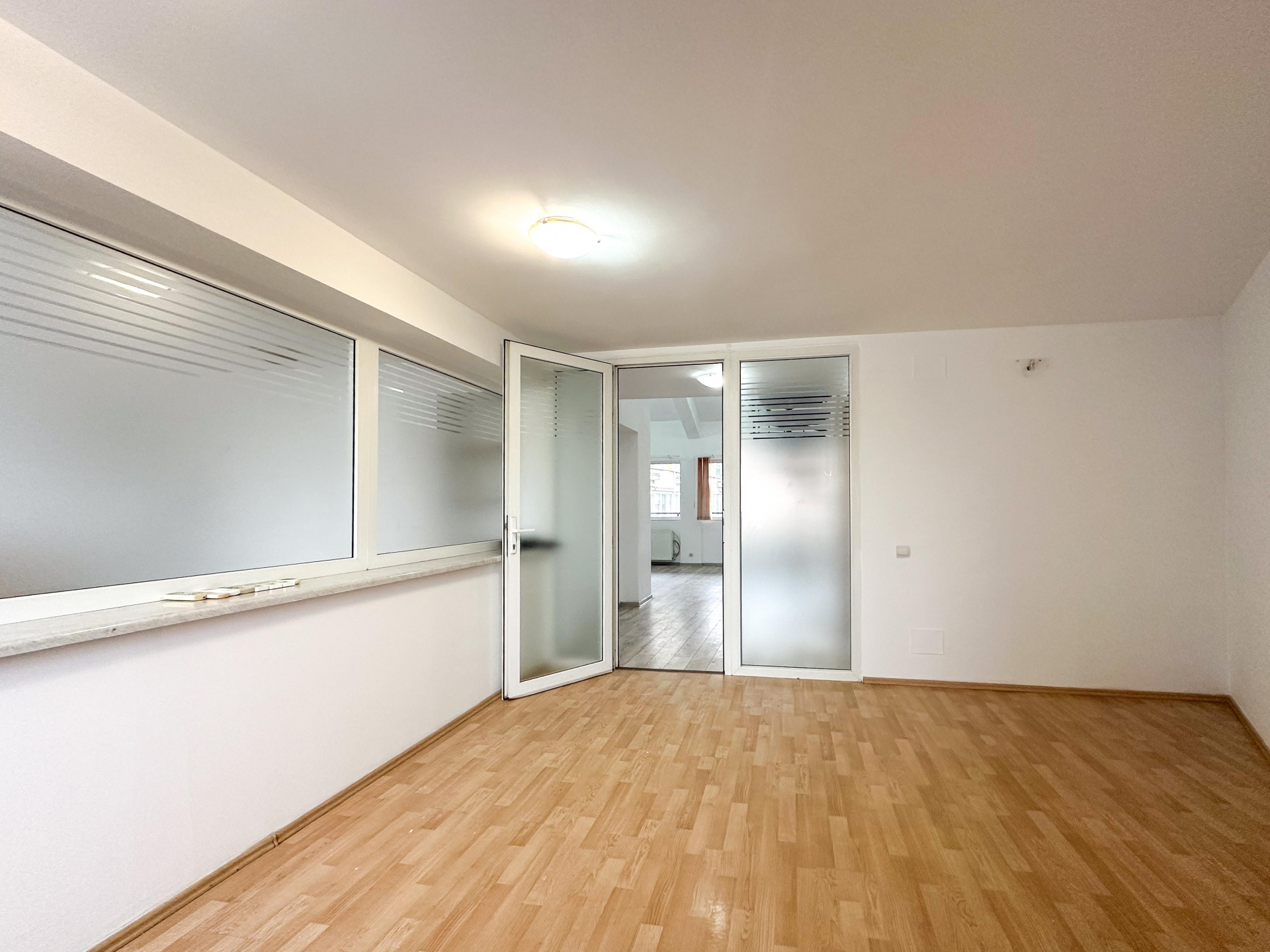 Nivelul superior, conectat printr-o scară interioară elegantă: 60 mp divizați inteligent în 3 birouri distincte – perfecte pentru departamente, meeting rooms sau spații private de concentrare. Două balcoane, baie – intimitate și funcționalitate acolo unde contează.